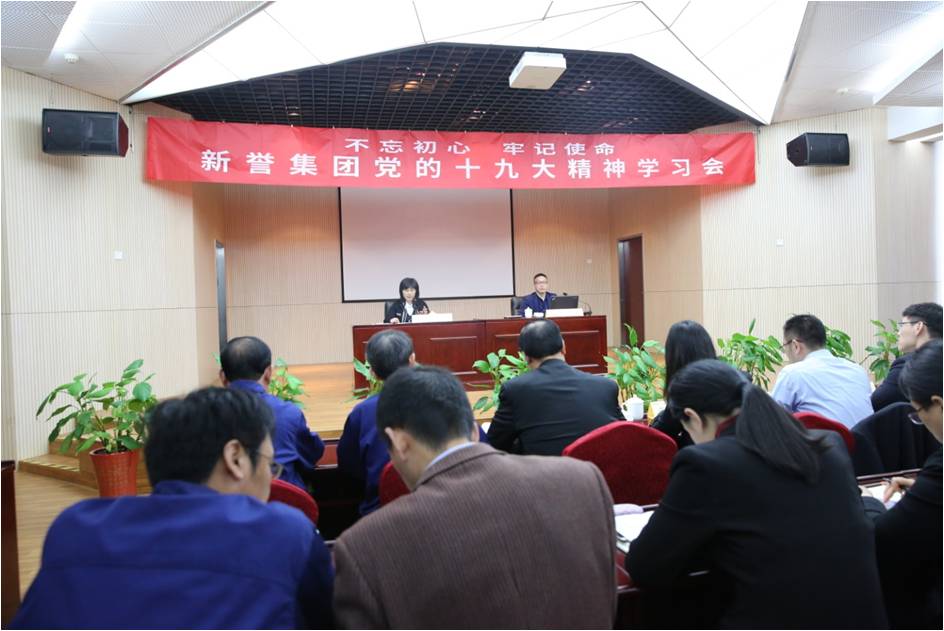 為認真學習宣傳貫徹黨的十九大精神,把黨員、干部和員工的思想統一到黨的十九大精神上來,11月6日下午,新譽集團黨委召開了 “不忘初心、牢記使命”黨的十九大精神學習會,集團黨委書記戈亞琴主持會議,集團全體黨員和中高層領導以及黨建結對共建單位的代表共200余人參加。大會邀請了常州市委黨校李紅利教授作了黨的十九大精神輔導報告。