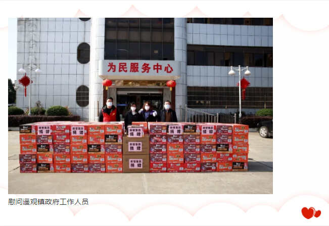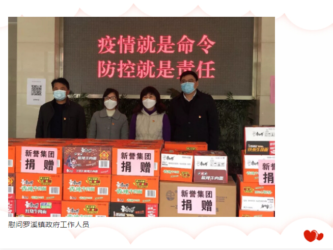新冠肺炎疫情發生以來,新譽集團黨委書記、副總裁戈亞琴心系武漢,積極響應江蘇省婦女兒童福利基金會及眾多愛心媒體和單位發起的“在你身邊 · 抗擊疫魔”行動,積極捐款捐物,通過江蘇省婦聯采購6000只KF94韓國口罩,第一時間派送到武漢,支援戰斗在第一線的醫護人員。