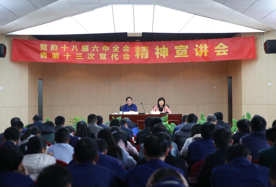 首頁 > 集團新聞 為幫助大家進一步全面深入了解、貫徹落實黨的十八屆六中全會和江蘇省第十三次黨代會精神,11月26日,新譽集團舉行“黨的十八屆六中全會 省第十三次黨代會精神” 宣講會,集團全體黨員及中高層領(lǐng)導共200余人參加。省第十三次黨代會代表、集團黨委書記戈亞琴傳達了江蘇省第十三次黨代會精神,常州市委黨校理論研究中心主任康永超教授宣講了黨的十八屆六中全會精神。